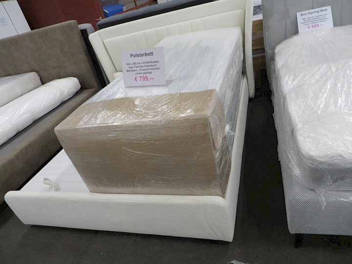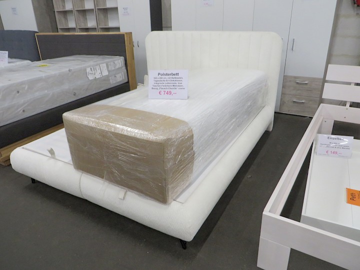 160 x 200 cm, mit Bettkasten, lose Taschen-Federkern-Matratzen, "Flausch-Chenille" creme geprägt