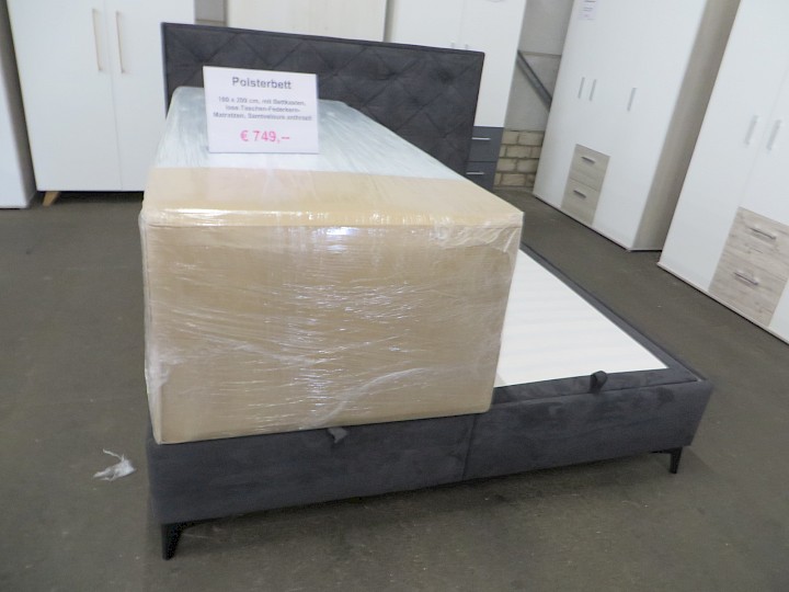 160 x 200 cm, mit Bettkasten, lose Taschen-Federkern-Matratzen, Samtvelours anthrazit