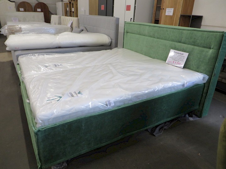 180 x 200 cm, mit Bettkasten, verstellbare Lattenroste, lose Tonnen-Taschen-Federkern-Matratzen (Soft), Bezug Chenille grün - by Musterring -