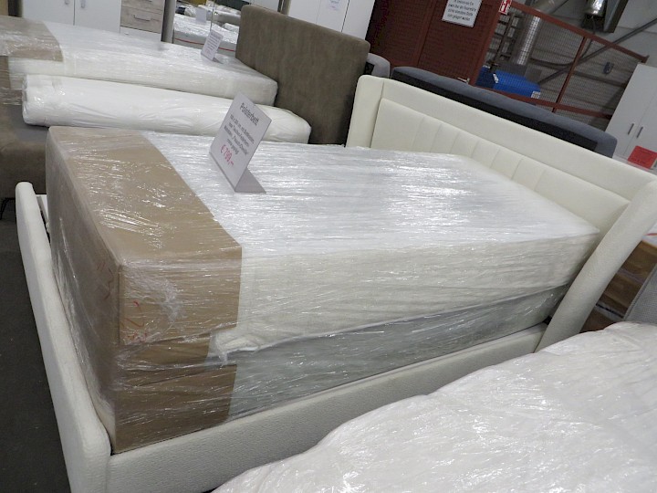 160 x 200 cm, mit Bettkasten, lose Taschen-Federkern-Matratzen, "Flausch-Chenille" creme geprägt