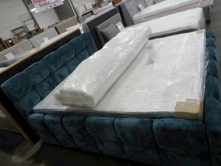 180 x 200 cm, Unterbau mit Bonnell-Federkern, lose Taschen-Federkern-Matratze, Topper, Bezug "Flausch-Chenille" türkis
