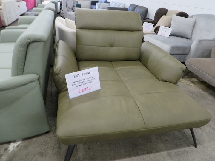 verstellbare Kopfstütze, Echt Leder oliv marmoriert, Rücken vollbezogen