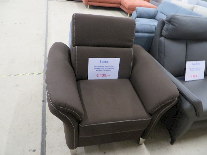 verstellbare Kopfstütze, Bezug Strukturstoff schoko mit weißen Ziernähten