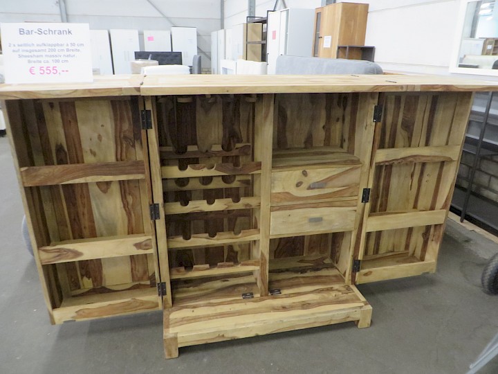 2 x seitlich aufklappbar à 50 cm auf insgesamt 200 cm Breite, Sheesham massiv natur, Breite ca. 100 cm