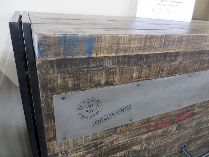 Mango massiv sägerau "Vintage-Optik" / Gestell Metall schwarz, Breite ca. 140 cm