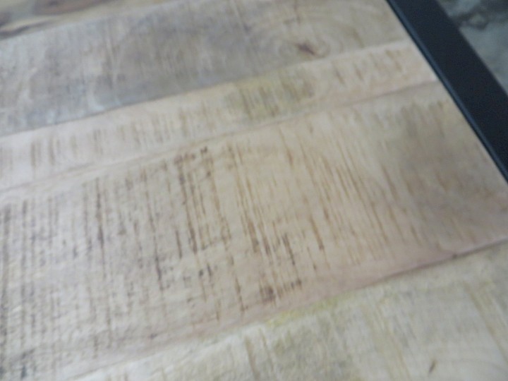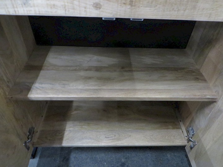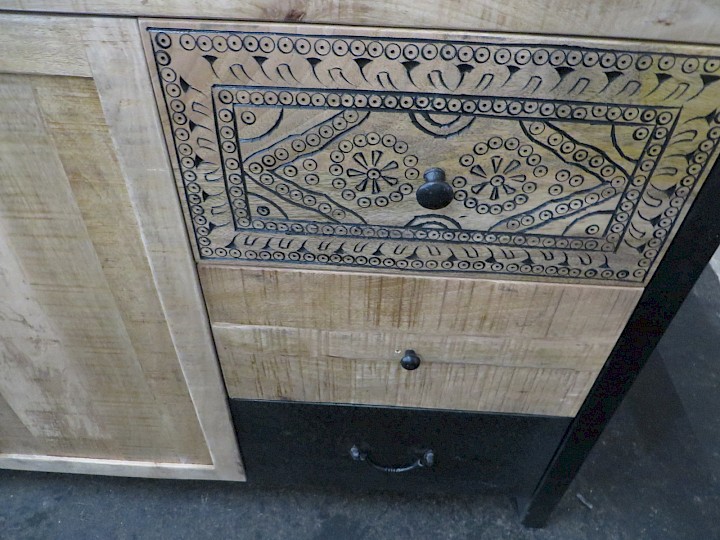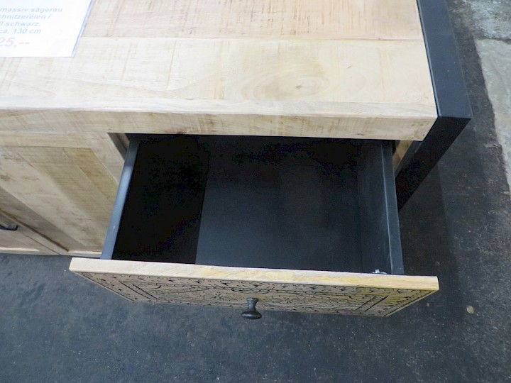 Mango massiv sägerau mit Schnitzereien / Metall schwarz, Breite ca. 130 cm