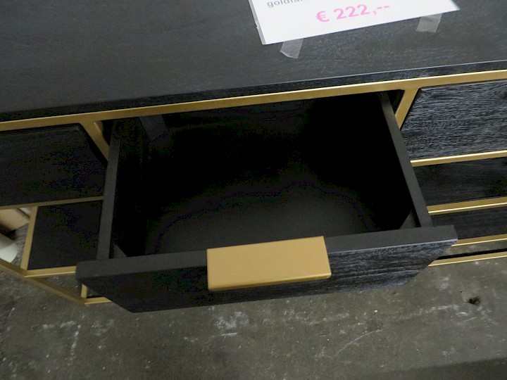 Mango massiv schwarz lackiert / Gestell Metall goldfarben, Breite ca. 140 cm