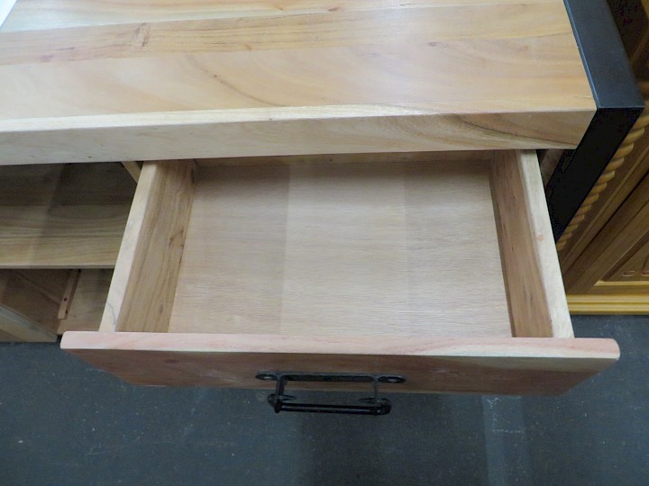 Akazie massiv natur / Gestell Metall schwarz, Breite ca. 150 cm