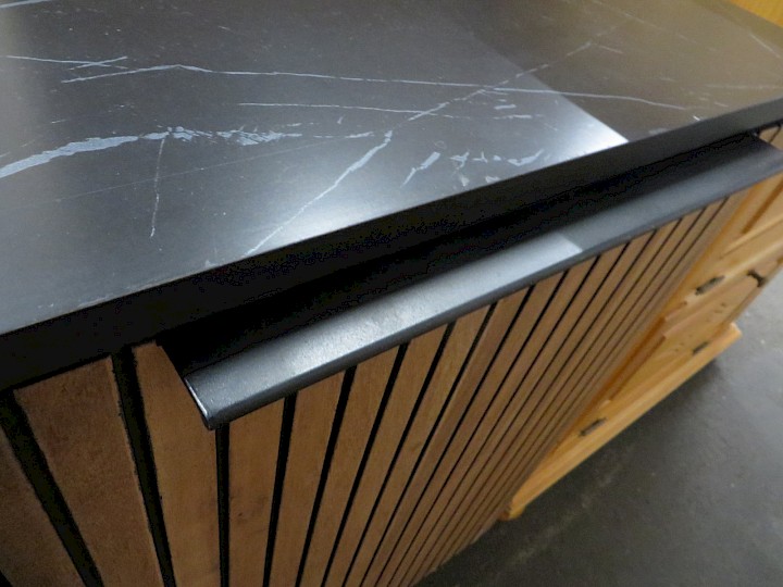 Akazie massiv natur / Marmor-Nb. schwarz, Breite ca. 135 cm