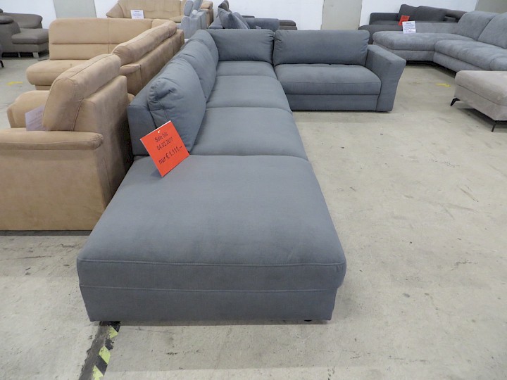 3 x Sitztiefenverstellung, Bezug Chenille grau, Rücken vollbezogen, Schenkelmaß ca. 410 x 240 cm