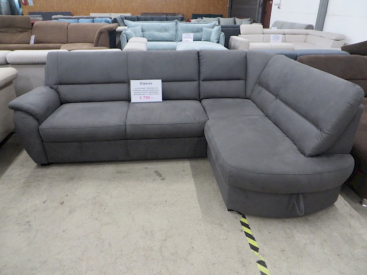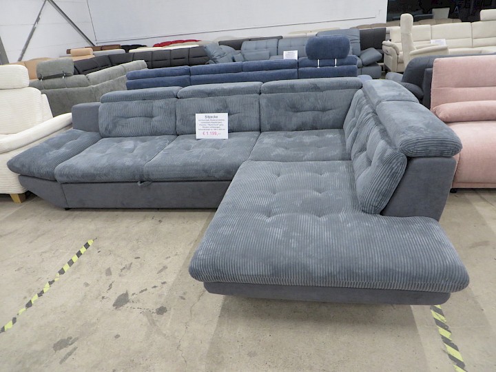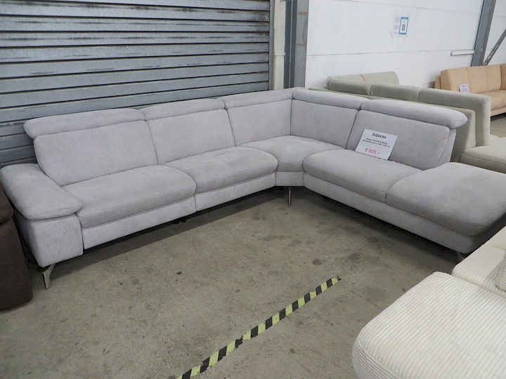 mit Hochbett, Rasterarmlehne, verstellbare Kopfstützten, Chenille / "Samt-Cord" grau, Rücken vollbezogen, Schenkelmaß ca. 300 x 220 cm
