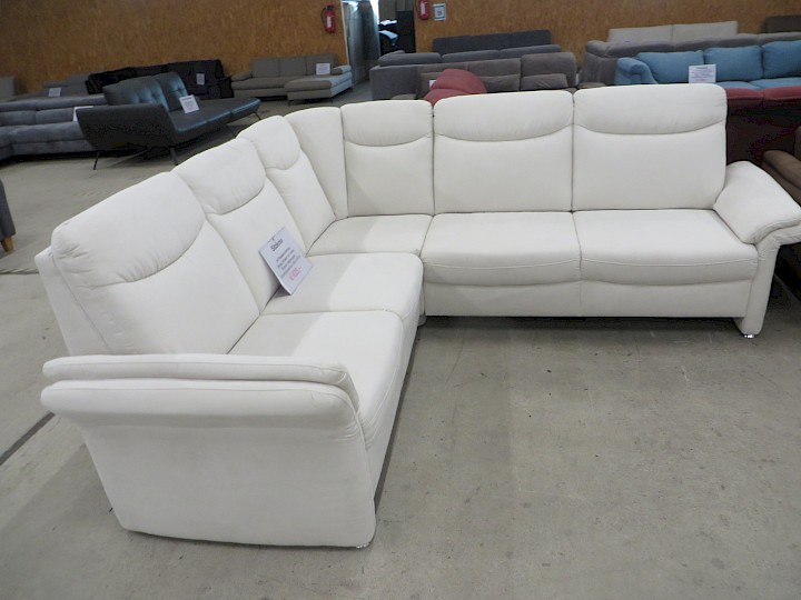 mit Rasterarmlehnen, Bezug Alcatex uni creme, Rücken vollbezogen, Schenkelmaß ca. 220 x 250 cm