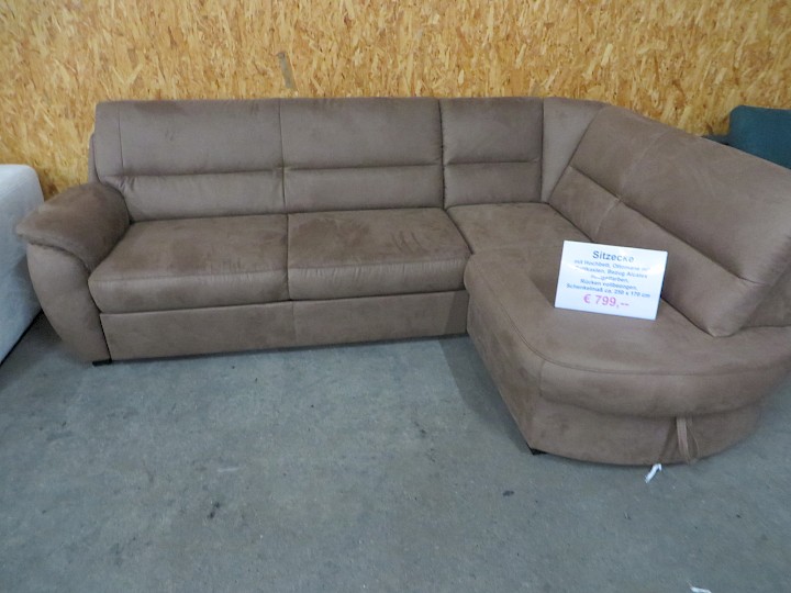mit Hochbett, Ottomane mit Bettkasten, Bezug Alcatex nougatfarben, Rücken vollbezogen, Schenkelmaß ca. 250 x 170 cm