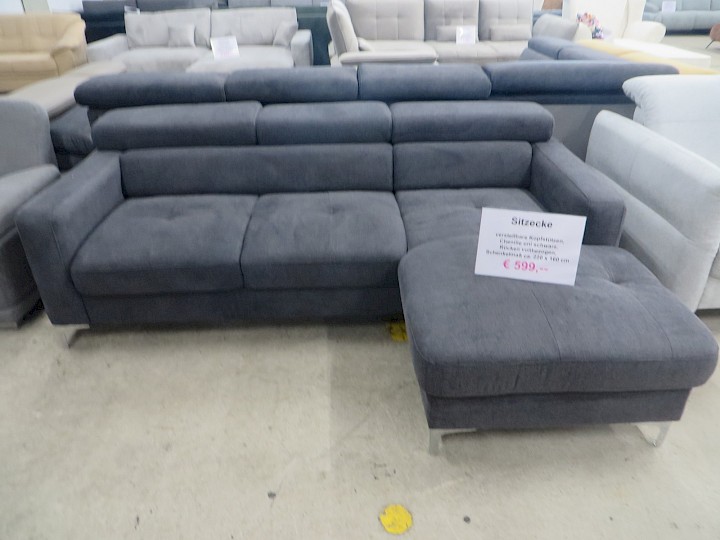 verstellbare Kopfstützen, Chenille uni schwarz, Rücken vollbezogen, Schenkelmaß ca. 220 x 160 cm