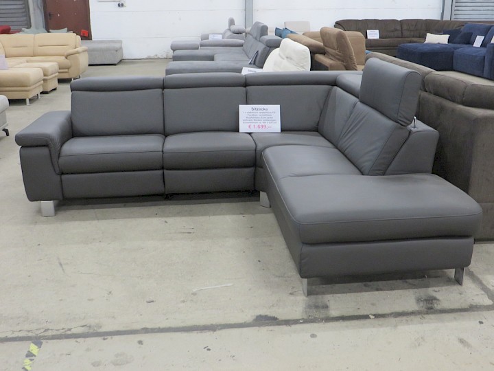 1 x elektrisch verstellbare TV-Funktion, verstellbare Kopfstützen, Echt Leder anthrazit, Rücken vollbezogen, Schenkelmaß ca. 260 x 230 cm