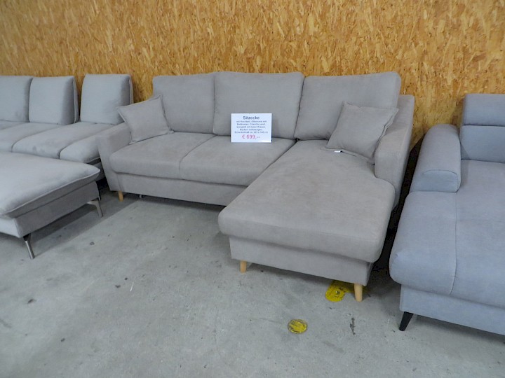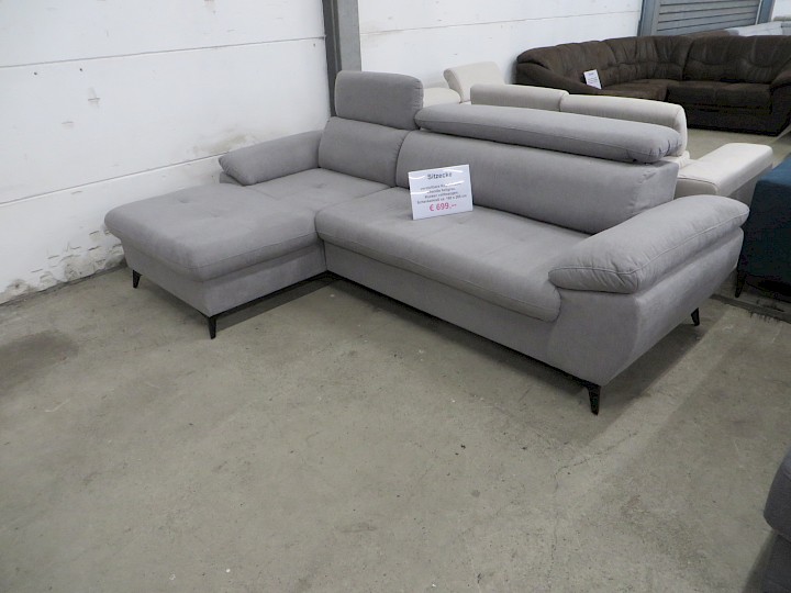 verstellbare Kopfstützen, Chenille hellgrau, Rücken vollbezogen, Schenkelmaß ca. 160 x 250 cm