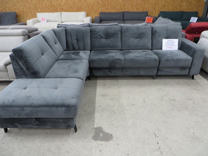mit manuell verlängerbarer Sitztiefe + Staufach, Samtvelours uni grau, Rücken vollbezogen, Schenkelmaß ca. 220 x 290 cm