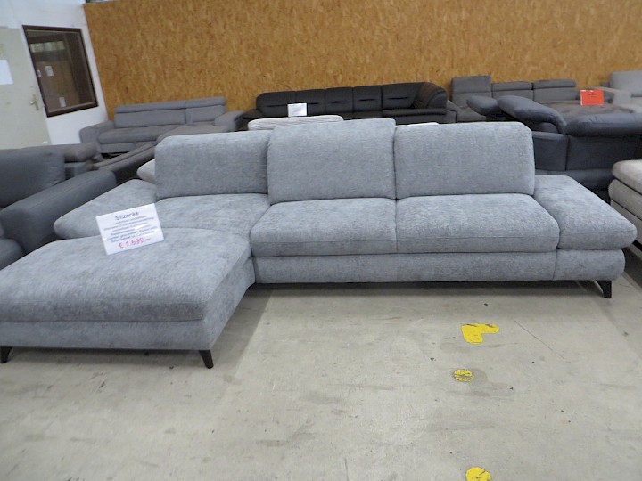 3 x Sitztiefenverstellung, Bezug Chenille grau, Rücken vollbezogen, Schenkelmaß ca. 410 x 240 cm