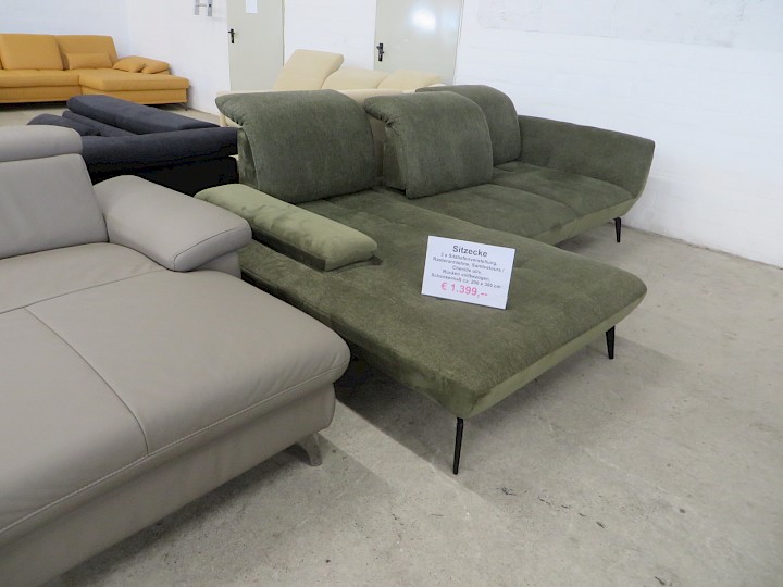 3 x Sitztiefenverstellung, Rasterarmlehne, verstellbare Kopfstützen, Samtvelours / Chenille oliv, Rücken vollbezogen, Schenkelmaß ca. 200 x 300 cm