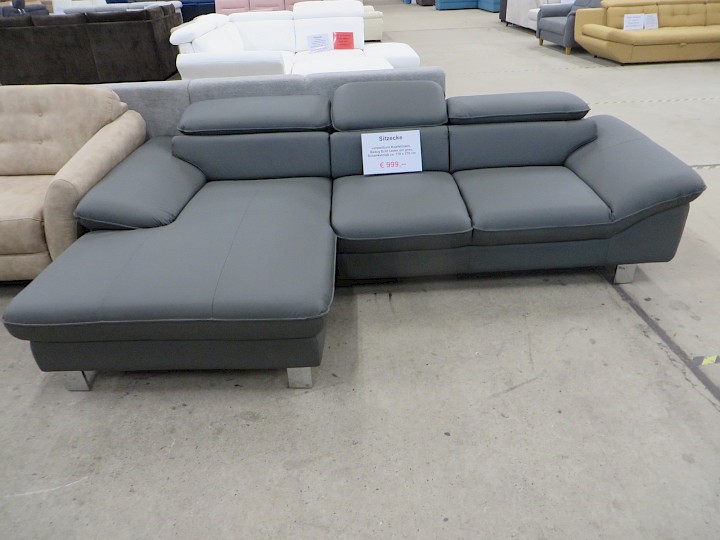 verstellbare Kopfstützen, Echt Leder uni grau, Schenkelmaß ca. 170 x 270 cm