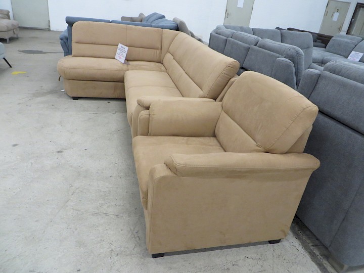 mit Sessel, Hochbett, Ottomane mit Bettkasten, Bezug Alcatex cappuccino, Rücken vollbezogen, Schenkelmaß ca. 170 x 250 cm