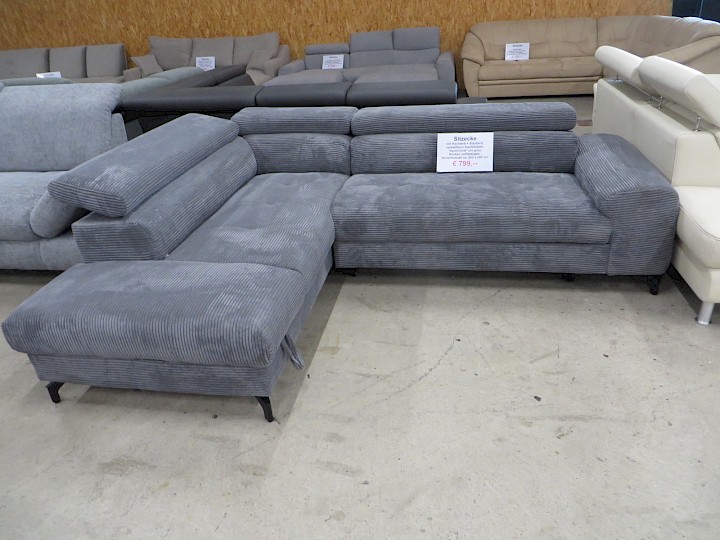 mit Hochbett + Staufach, verstellbare Kopfstützen, "Samt-Cord" uni grau, Rücken vollbezogen, Schenkelmaß ca. 200 x 245 cm