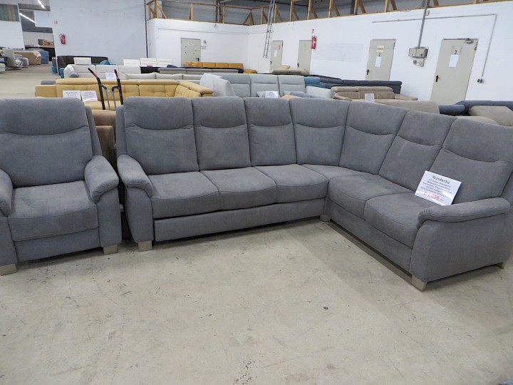 mit Hochbett, Rasterarmlehne, verstellbare Kopfstützen, Strukturstoff curry meliert, Rücken vollbezogen, Schenkelmß ca. 300 x 225 cm