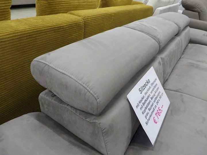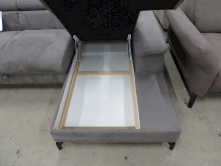 mit Hocker, Hochbett, Ottomane mit Bettkasten, verstellbare Kopfstützen, Bezug Alcatex grau, Rücken vollbezogen, Schenkelmaß ca. 240 x 160 cm