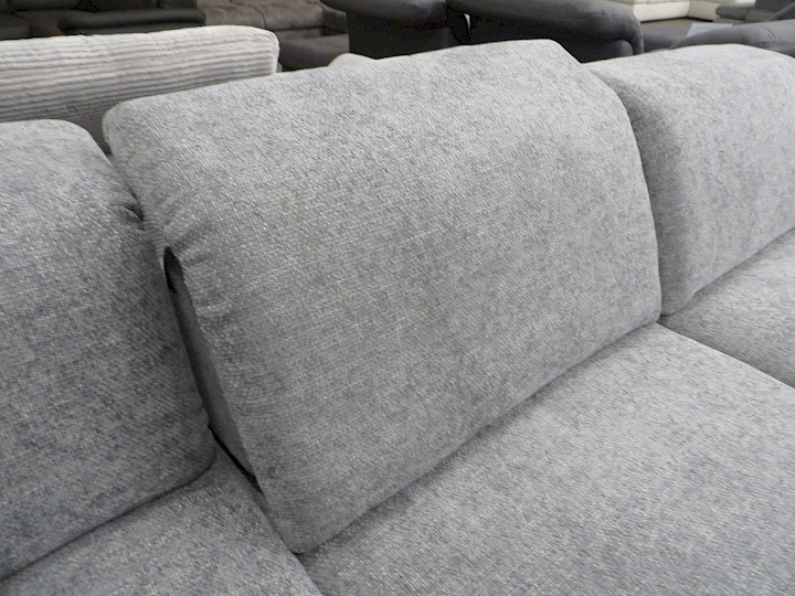 1 x elektrisch verstellbare Ottomane, 2 x Sitztiefenverstellung, verstellbare Kopfstützen, Rasterarmlehnen, "Flausch-Chenille" grau meliert, Rücken vollbezogen, Schenkelmaß ca. 190 x 320 cm