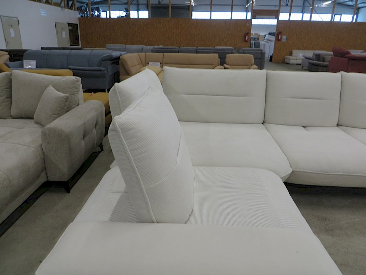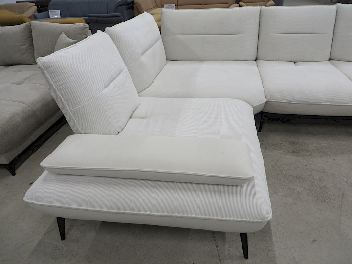3 x Sitztiefenverstellung, Chenille / Samtvelours creme, Rücken vollbezogen, Schenkelmaß ca. 250 x 320 cm