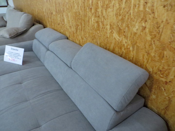 mit Hocker, verstellbare Kopfstützen, Chenille hellgrau, Rücken vollbezogen, Schenkelmaß ca. 160 x 240 cm