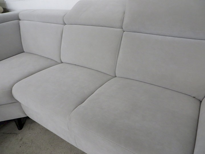 verstellbare Kopfstützen, Bezug Novalife hellgrau, Rücken vollbezogen, Schenkelmaß ca. 240 x 250 cm