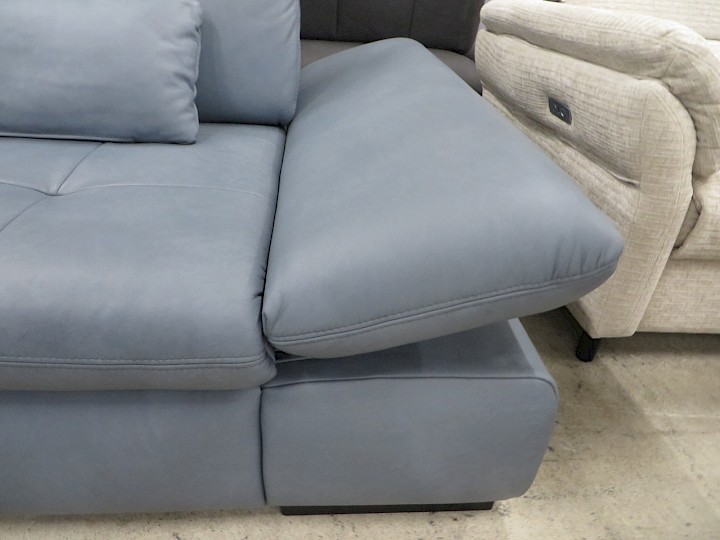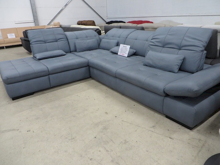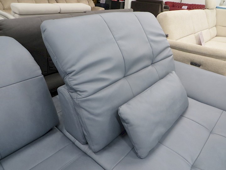 5 x Sitztiefenverstellung, verstellbare Kopfstützen, Rasterarmlehne, Echt Leder taubenblau, Rücken vollbezogen, Schenkelmaß ca. 270 x 340 cm