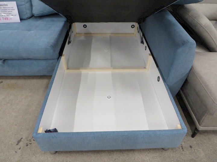mit Hochbett, Ottomane mit Bettkasten, komplett mit losen Kissen, Chenille petrol, Rücken vollbezogen, Schenkelmaß ca. 250 x 190 cm