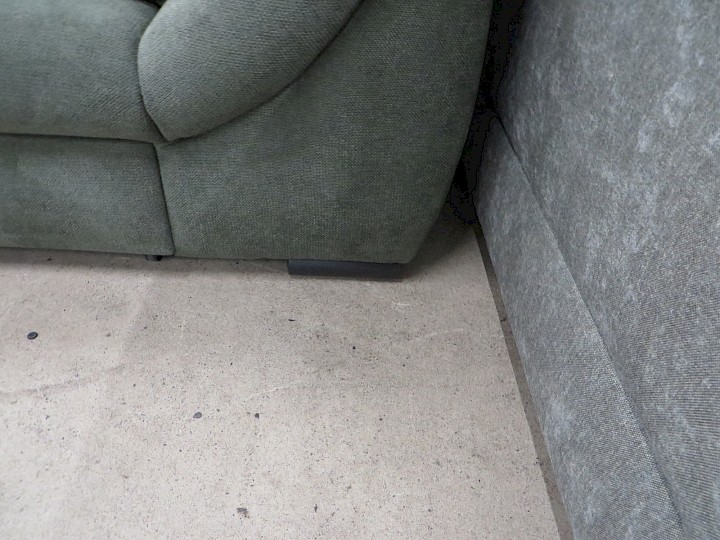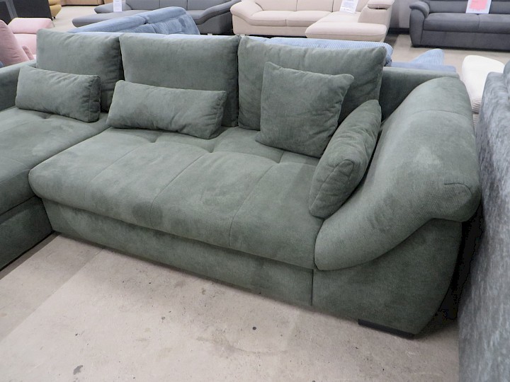 mit Hochbett, Ottomane mit Bettkasten, Chenille moosgrün, komplett mit losen Kissen, Rücken vollbezogen, Schenkelmaß ca. 190 x 300 cm