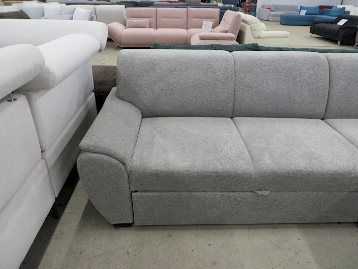 mit Hochbett, Ottomane mit Bettkasten, Chenille grau meliert, Rücken vollbezogen, Schenkelmaß ca. 260 x 180 cm