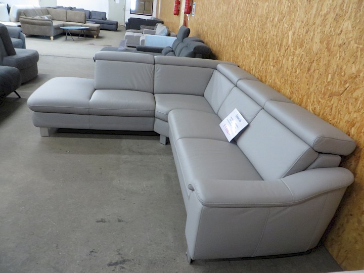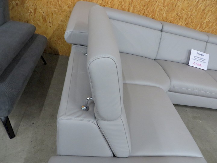 verstellbare Kopfstützen, Echt Leder hellgrau, Schenkelmaß ca. 230 x 260 cm