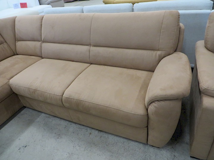 mit Sessel, Hochbett, Ottomane mit Bettkasten, Bezug Alcatex cappuccino, Rücken vollbezogen, Schenkelmaß ca. 170 x 250 cm
