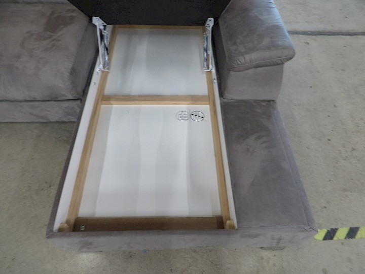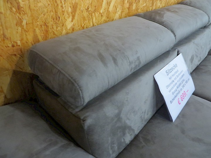 mit Hochbett, Ottomane mit Bettkasten, verstellbare Kopfstützen, Bezug Alcatex grau, Rücken vollbezogen, Schenkelmaß ca. 240 x 160 cm