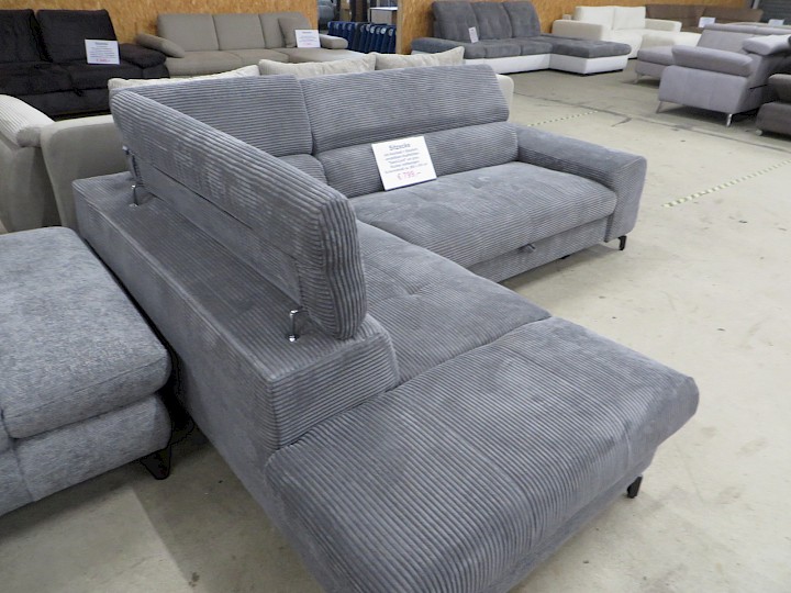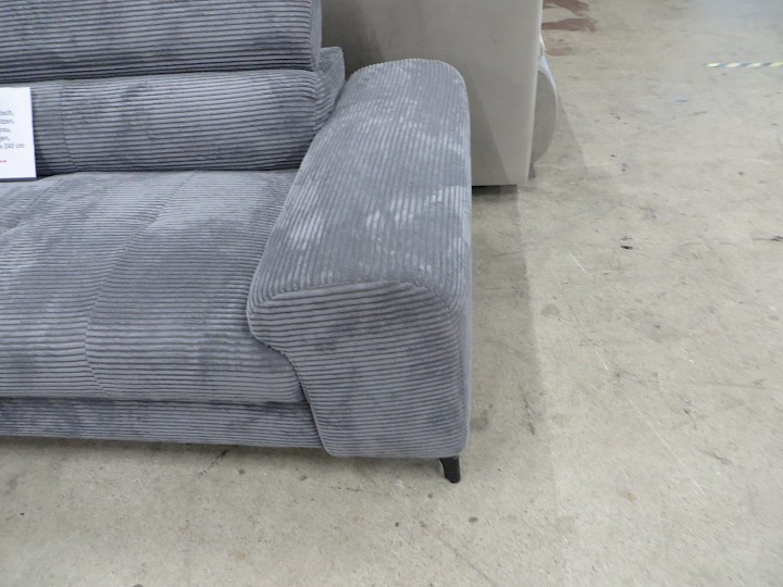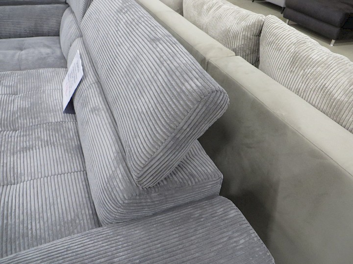 mit Hochbett + Staufach, verstellbare Kopfstützen, "Samt-Cord" grau, Rücken vollbezogen, Schenkelmaß ca. 200 x 245 cm