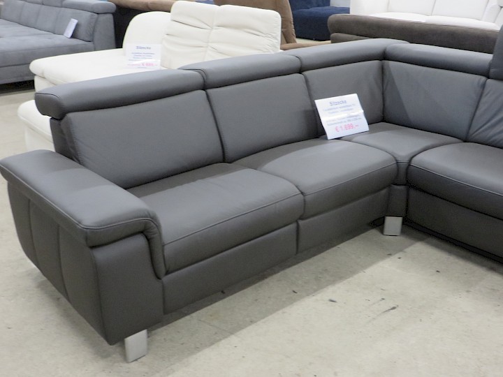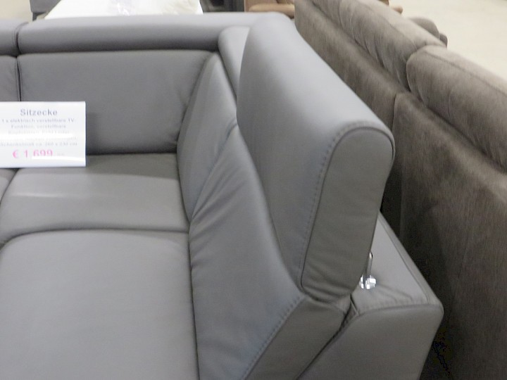 1 x elektrisch verstellbare TV-Funktion, verstellbare Kopfstützen, Echt Leder anthrazit, Rücken vollbezogen, Schenkelmaß ca. 260 x 230 cm