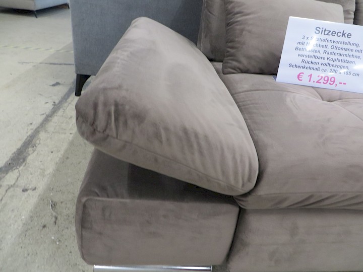 3 x Sitztiefenverstellung, mit Hochbett, Ottomane mit Bettkasten, Rasterarmlehne, verstellbare Kopfstützen, Schenkelmaß ca. 280 x 185 cm