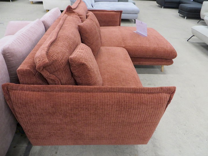 mit 4 Dekokissen, Bezug Chenille koralle, Rücken vollbezogen, Schenkelmaß ca. 255 x 180 cm