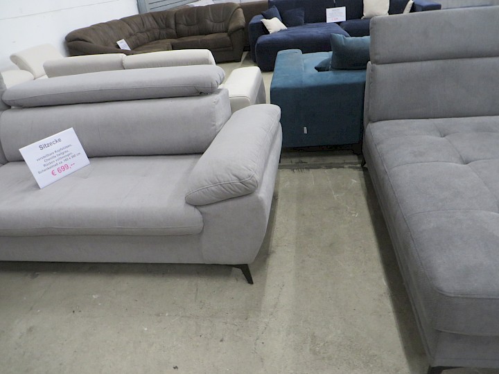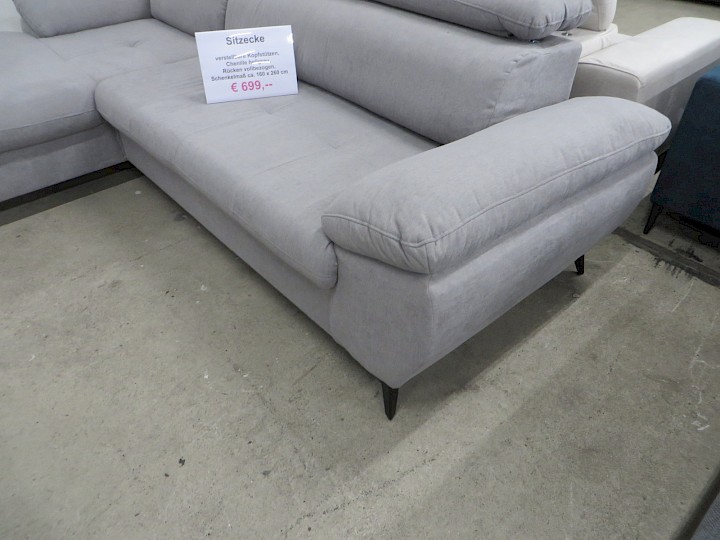 verstellbare Kopfstützen, Chenille hellgrau, Rücken vollbezogen, Schenkelmaß ca. 160 x 250 cm