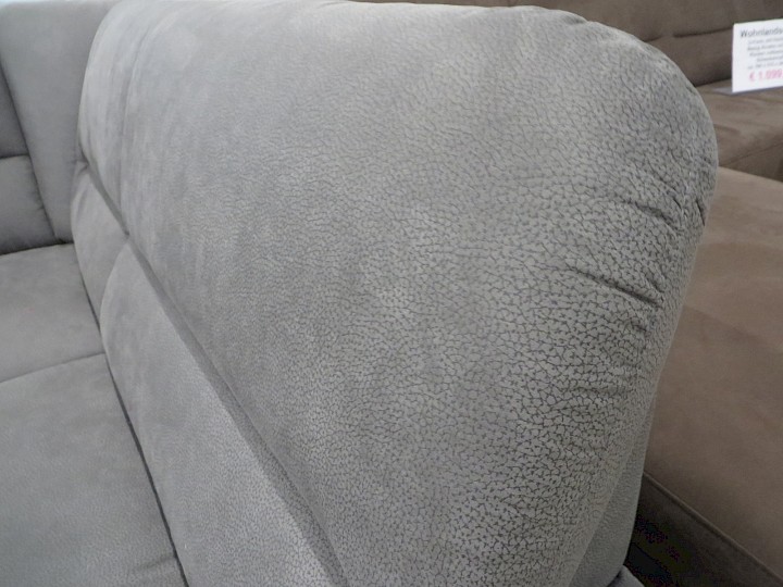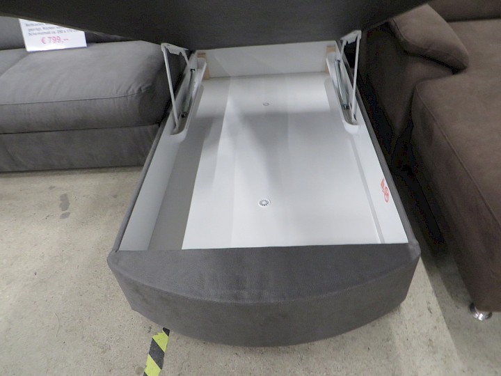 mit Hochbett, Ottomane mit Bettkasten, Bezug Alcatex grau geprägt, Rücken vollbezogen, Schenkelmaß ca. 250 x 170 cm