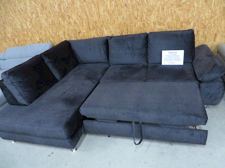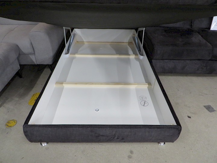 mit Hochbett, Ottomane mit Bettkasten, 3 x Sitztiefenverstellung, Rasterarmlehne, Samtvelours schwarz, Rücken vollbezogen, Schenkelmaß ca. 210 x 265 cm