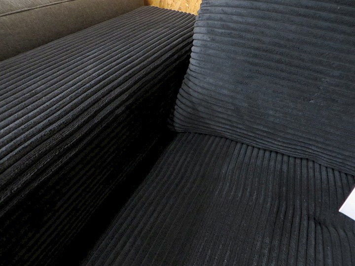 mit Schlaffunktion, komplett mit losen Kissen, "Samt-Cord" uni schwarz, Rücken vollbezogen, Schenkelmaß ca. 240 x 180 cm