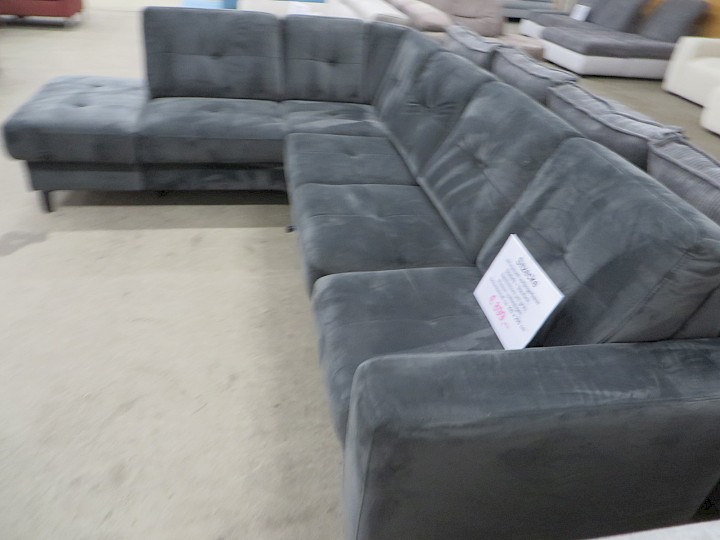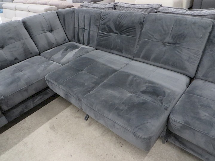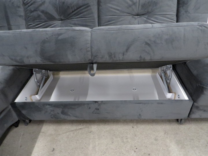 mit manuell verlängerbarer Sitztiefe + Staufach, Samtvelours uni grau, Rücken vollbezogen, Schenkelmaß ca. 220 x 290 cm
