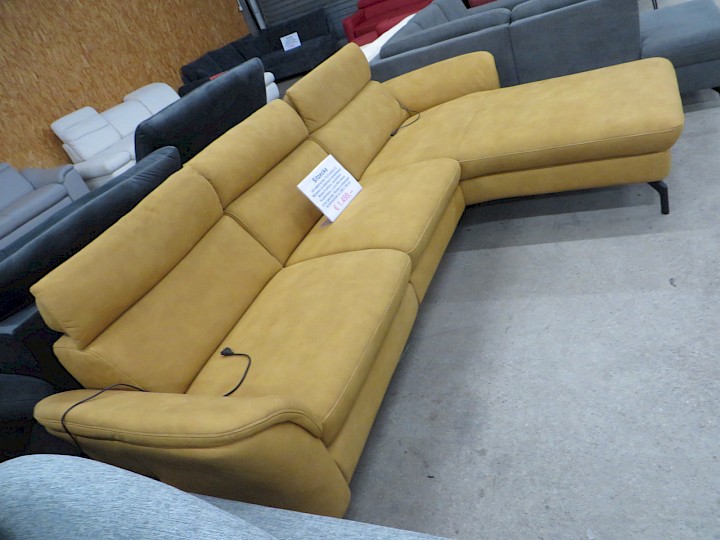 mit elektrischer TV-Funktion (2 Motoren) & elektrischer Relax-Funktion, verstellbare Kopfstützen, Luxus-Microfaser curry geprägt, Rücken vollbezogen, Schenkelmaß ca. 290 x 180 cm