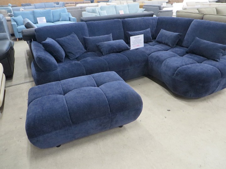 mit Hocker, 3 x Sitztiefenverstellung, Chenille mitternachtsblau, Rücken vollbezogen, Schenkelmaß ca. 260 x 200 cm